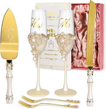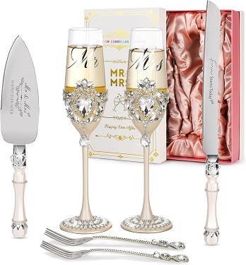 Wedding Cake Knife and Server Set with Champagne Flutes Only $37.49
