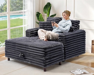 ➡️ Use code SVN9A2HE 60” Oversized Chaise Lounge Chair Indoor, Comfy Sofa Bed with Storage,…