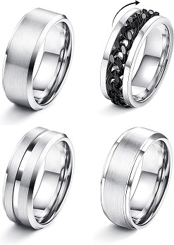Set of 4 Men’s Stainless-Steel Rings Only $3