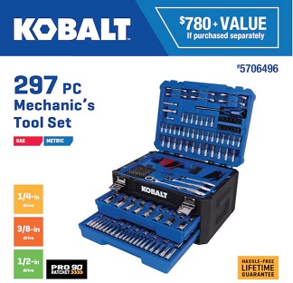 Kobalt 297-Piece Standard & Mechanics Tool Set with Hard Case Only $99