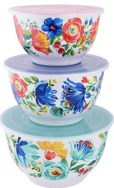 Whether you’re preparing, mixing, or serving, The Pioneer Woman Delaney 6-piece Melamine Bowl Set is a must-have for making your next meal. The Pioneer Woman Delaney 6-piece Melamine Bowl Set features a classic design that is both elegant and beautiful. Each bowl is decorated with a vintage-inspired confetti design for the perfect pop of fun color in your kitchen and come in staggered sizes, so you will always find the right fit for your cooking and baking needs. These nesting bowls are an ideal choice set for everyday food preparation, from mixing ingredients for baked goods to hearty salads. They are also ideal for serving your favorite snacks at parties and family gatherings. Pair them with other items in the Pioneer Woman collection, such as dinner plates, salad plates, drinkware, ceramic bakeware, and more to create your own personalized kitchen style. A top choice for every country cook’s kitchen is The Pioneer Woman Delaney 6-piece Melamine Bowl Set.