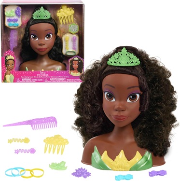 Let creativity shine with the Disney Princess Tiana Styling Head. Perfect for hours of pretend play, this 8-inch styling head comes with a fabulous tiara and 12 additional accessories to add glamour to Tiana’s curly black hair.
