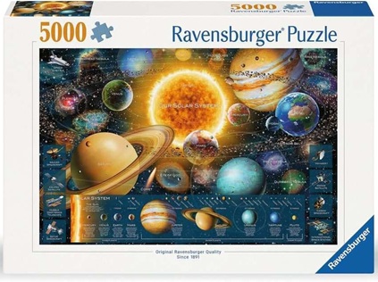 Dive into a galactic adventure with the Ravensburger 5000-piece ‘Space Odyssey’ jigsaw puzzle. This challenging puzzle provides an immersive journey through our solar system, revealing the relative size, mass, temperature, and distance to the sun of each planet.