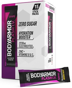 From the experts in superior hydration, BODYARMOR Flash I.V. Powder sticks are made with a boost of electrolytes, vitamins, minerals and great tasting flavors. Portable, on-the-go stick packs make it easy to take with you