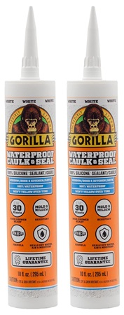 Gorilla Waterproof Caulk & Seal 100% Silicone Sealant* seals out water, air and moisture and is great for kitchen, bath, window, doors, auto, marine plumbing, gutters and more!