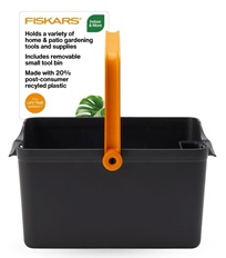 Fiskars Gardening Tool Caddy is a mindfully designed storage solution for gardening on balconies and patios. The body is made of durable resin with 20% recycled plastic.