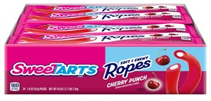 Sweet and tart – SweeTARTS Ropes are delightfully sweet and boldly tart. This bag contains twenty four 1.8 ounce packs of SweeTARTS Cherry Punch Ropes. Each soft rope is a bendable fusion of fun. They’re chewy, with a tart fruit punch flavor.