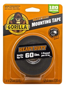 Gorilla Heavy Duty Mounting Tape (XL) is a two sided tape that mounts in an instant; for a permanent; weatherproof bond. The 1pk of extra long; industrial strength; double sided tape delivers a heavy-duty bond that holds up to 60 pounds.