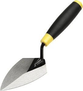 The M-D Pointing Trowel is a small, triangular-shaped tool used primarily in masonry to fill and shape mortar joints. This blade is stainless steel and is riveted to an ergonomic TPR handle which fits snuggly in the palm, offering comfort and control to the wielder.