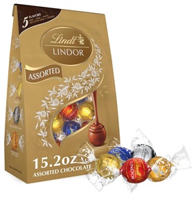 Each bag features Milk Chocolate, White Chocolate, Dark Chocolate, Caramel Milk Chocolate and 60% Extra Dark Chocolate truffles.