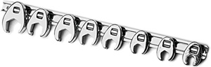 For hard to reach fasteners. Heat treated alloy steel. Drop forged for strength. Polished chrome plated finish. Bonus storage rail included. Sizes: 3/8 to 7/8″.