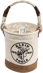 The Klein Tools Mini Leather-Bottom Bucket is perfect for trade professionals or a gift for your favorite Klein Tools enthusiast. Made of heavy duty natural canvas with a rope handles and leather-reinforced bottom, the bucket features the strength of larger Klein Tools canvas buckets, but on a much smaller scale.