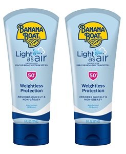 Experience the lighter side of suncare with Banana Boat Light As Air Sunscreen SPF 50 Lotion. It’s specially formulated to provide safe and effective broad-spectrum UVA/UVB protection, without feeling heavy or greasy on the skin. This fast-absorbing formula rubs in clear and is ultra-breathable, so it feels as if it is barely on.