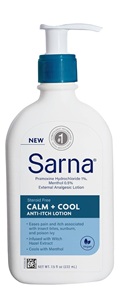 Sarna Calm + Cool Anti-Itch Lotion, Soothe and Relieve Pain and Itch from Insect Bites, Sunburn, & Poison Ivy, Contains 1% Pramoxine Hydrochloride, 0.5% Menthol, Vegan, Steroid-Free, 7.5oz