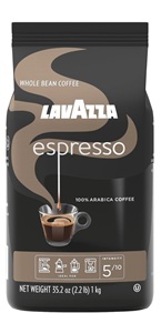 Lavazza Espresso is a fragrant medium roast featuring aromatic notes of fruits and florals. This 100% Arabica blend is sourced from South America and Africa. This blend is ideal for espresso or drip coffee preparation.