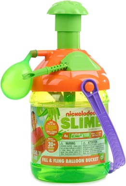 BALLOON BATTLES WITH A SLIMY TWIST. The Nickelodeon Slime Brand Compound Fill & Fling Balloon Bucket allows you to fill balloons with slimy goo and fling them at your friends. Officially licensed by Nickelodeon and produced by WowWee.