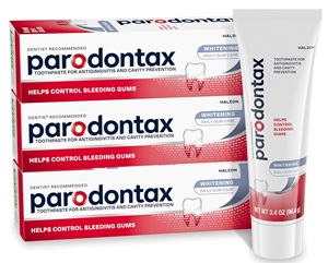 - Three 3.4 oz tubes of Parodontax Teeth Whitening Toothpaste to Help Bleeding Gums, Gum Toothpaste for Gum Health