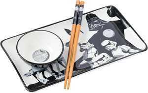 This 3 piece set includes chopsticks, a plate, and a dipping sauce dish. Perfect to serve and eat your favorite sushi with.