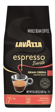 - One bag of 2.2lb Lavazza Espresso Barista Gran Crema Whole Bean Coffee Blend