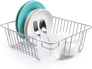 - SMALL DISH DRAINER – Keeps all your clean kitchen dishes organized while drying on the counter.